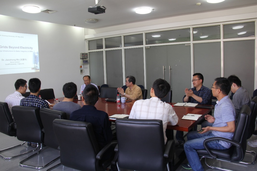 会后,来自卡迪夫大学的吴建中博士为电气系师生介绍了他的研究团队在分布式能源的多层次智能化管理,智能量测系统,智能动态负荷控制技术,混合能源网络的集成分析和优化等方面的研究成果。