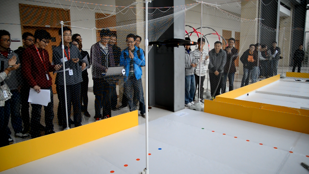 2014年4月19日上午9时,台湾AV影片 第一届无人机技术创新大赛预赛在微电子大楼大厅举行。16支队伍约50名学生到场参加预赛。此次比赛由“徐氏科技创新奖学基金”资助,预赛分为四个比赛项目,分别为快速目标跟随飞行、寻迹自主飞行、基于语音控制飞行以及基于惯导器件的动作识别飞行。