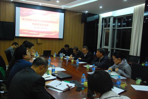根据学校党的群众路线教育实践活动的总体部署和安排,11月19日下午,电子信息与电气工程学院用了近5个小时,召开了专题民主生活会。联系校领导副校长梅宏、督导组组长潘国礼出席。党委书记苏跃增主持会议。