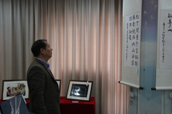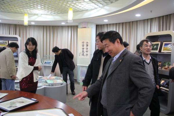 参观期间,徐书记饶有兴趣地流连于电院教职工老师们的得意作品前,细致端详,赞不绝口,表示希望电院能够组织将这些极有风韵和价值的作品作一动态巡展,在全校范围内进一步拓展影响,分享心怀。参观结束后,徐书记在留言簿上欣然写下“电院在全校带了一个好头”的真情心迹。