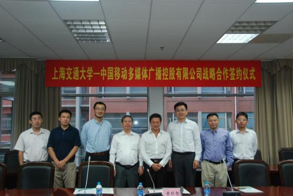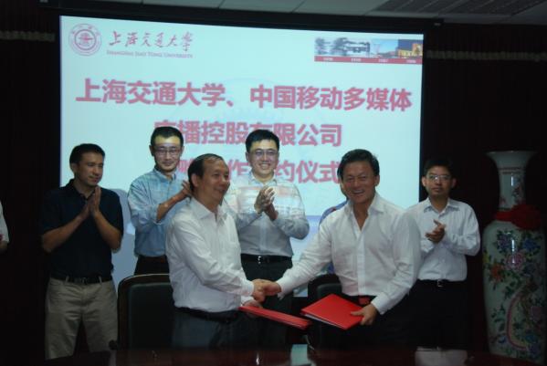 副校长张文军,电子信息与电气工程学院常务副院长毛军发、信息技术与电气工程研究院院长郁文贤、国家计划获得者电子系刘辉教授、国家青年计划获得者沈漫源,特别研究员夏斌及中国移动多媒体广播控股有限公司董事长黄秋智出席签约仪式。