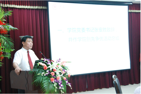 大会开始前,大屏幕滚动播出精心制作的电院先进基层党组织暨优秀党员风采录。会议伊始,电院党委书记张安胜致辞并作学院创先争优活动总结,他指出电院作为基层党组织,一直以来紧紧围绕人才培养、科学研究、社会服务、文化传承这一中心任务,党政齐心合力,聚焦改革发展,凝聚党心民心,锐意进取拼搏,在引领教学改革、科研攻关、管理创新等方面开展了一系列工作,同时创造性地进行了一系列创先争优活动并取得了一定的成绩,在这样特殊的历史时代,我们应立足本职,与时俱进,勇于创新,继续奋斗,同时他希望全体党员同志们坚定一个信念,坚持一种精神,坚守一份责任,为创建世界一流学院作出自己应有的贡献。