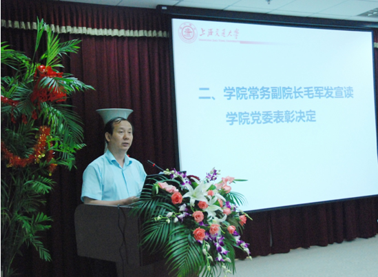 电院常务副院长毛军发宣读学院党委的表彰决定。自开展创先争优活动以来,学院各基层党组织和广大共产党员努力践行创先争优的基本要求,认真探索党建工作的新途径、新方法,紧紧围绕人才培养、科学研究等中心工作,为推动科学发展、促进学院和谐做出了积极贡献,涌现出一大批先进基层党组织和优秀共产党员。电院电子系党总支、电工中心党支部荣获校级先进基层党组织;严正、肖石林、管海兵等8位同志荣获校级优秀党员。电院电气系教工第一党支部等12个支部荣获院级先进基层党组织;马玉庆、马利庄等31位同志荣获院级优秀党员。学院希望受到表彰的先进基层党组织、优秀共产党员再接再厉,争取更大成绩。同时希望各党支部和广大党员要向先进典型学习,以先进典型为榜样,锐意进取,扎实工作,在推进学院内涵建设、努力建设世界一流学院的进程中作出更大贡献。