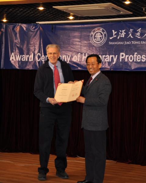 名誉教授,聘书授予仪式于2012年1月5日上午在电信学院3-200号学术报告厅隆重举行。仪式由计算机科学与工程系主任过敏意主持,张杰校长亲自为Hopcroft教授颁发聘书并佩戴校徽。电信学院院长毛军发、计算机系党总支书记吕宝粮及计算机系及致远学院师生共计100人参加。受聘仪式结束后,Hopcroft教授还做了题为Time