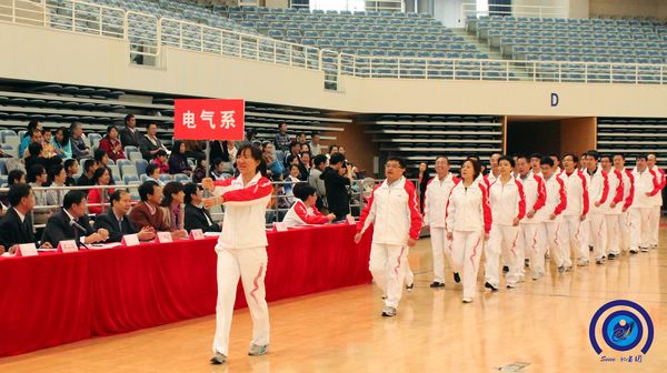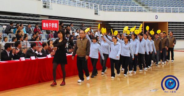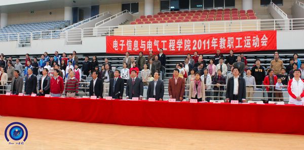 金秋十月,秋高气爽。为贯彻《全民健身计划纲要》,增强全体教职工身心素质,丰富校园文化生活,促进和谐家庭建设,经过一个多月的精心策划和组织,10月29日,电子信息与电气工程学院2011年教职工运动会在闵行校区新体育馆隆重开幕。电院党委书记张安胜致开幕词,校工会主席贾金平致贺词,电院常务副院长毛军发宣布运动会开幕。开幕式由电院工会主席莫光成主持。信息技术研究院院长郁文贤、校工会副主席张杰、体育系徐宝庆书记、毛丽娟主任,各系(中心)领导、信安学院、微电子学院领导,各单位教职工及家属500余人出席了开幕式。