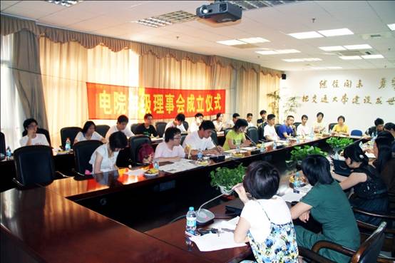 2011 年6月23日,电院2011届本科生校友理事会成立仪式在电院3号楼举行,2011届34个本科班级的理事齐聚一堂,共同见证了理事会的成立;电院党委书 记张安胜、副书记杨一帆、院长助理李萍、学生党总支书记洪梅、团委书记胡艳丽、职业发展中心主任林玲、思政老师张小丽等出席仪式。