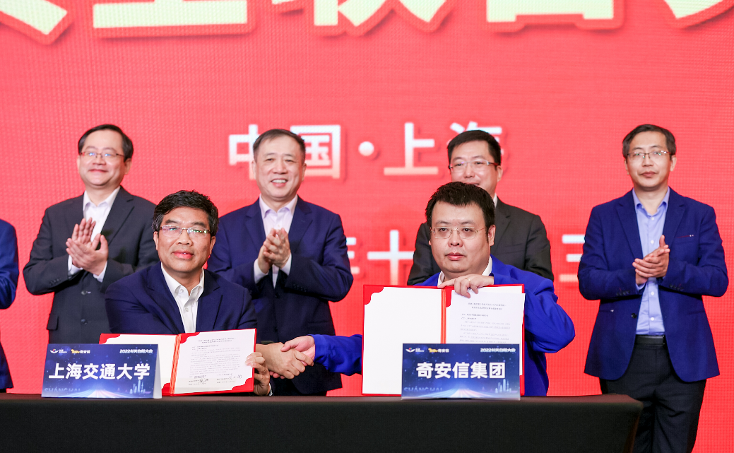 谷大武和奇安信韩争光代表双方在合作协议上签字。与会领导和嘉宾鉴签。