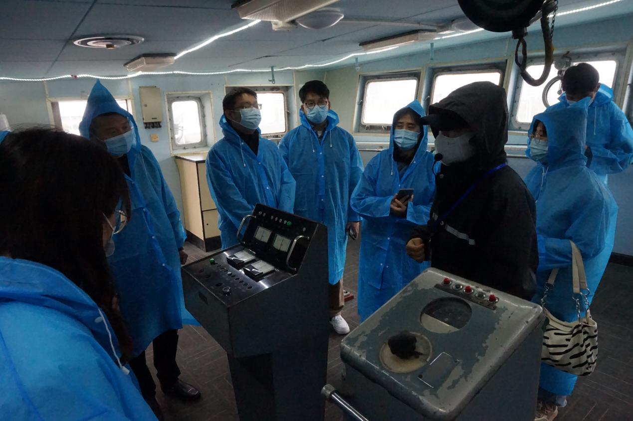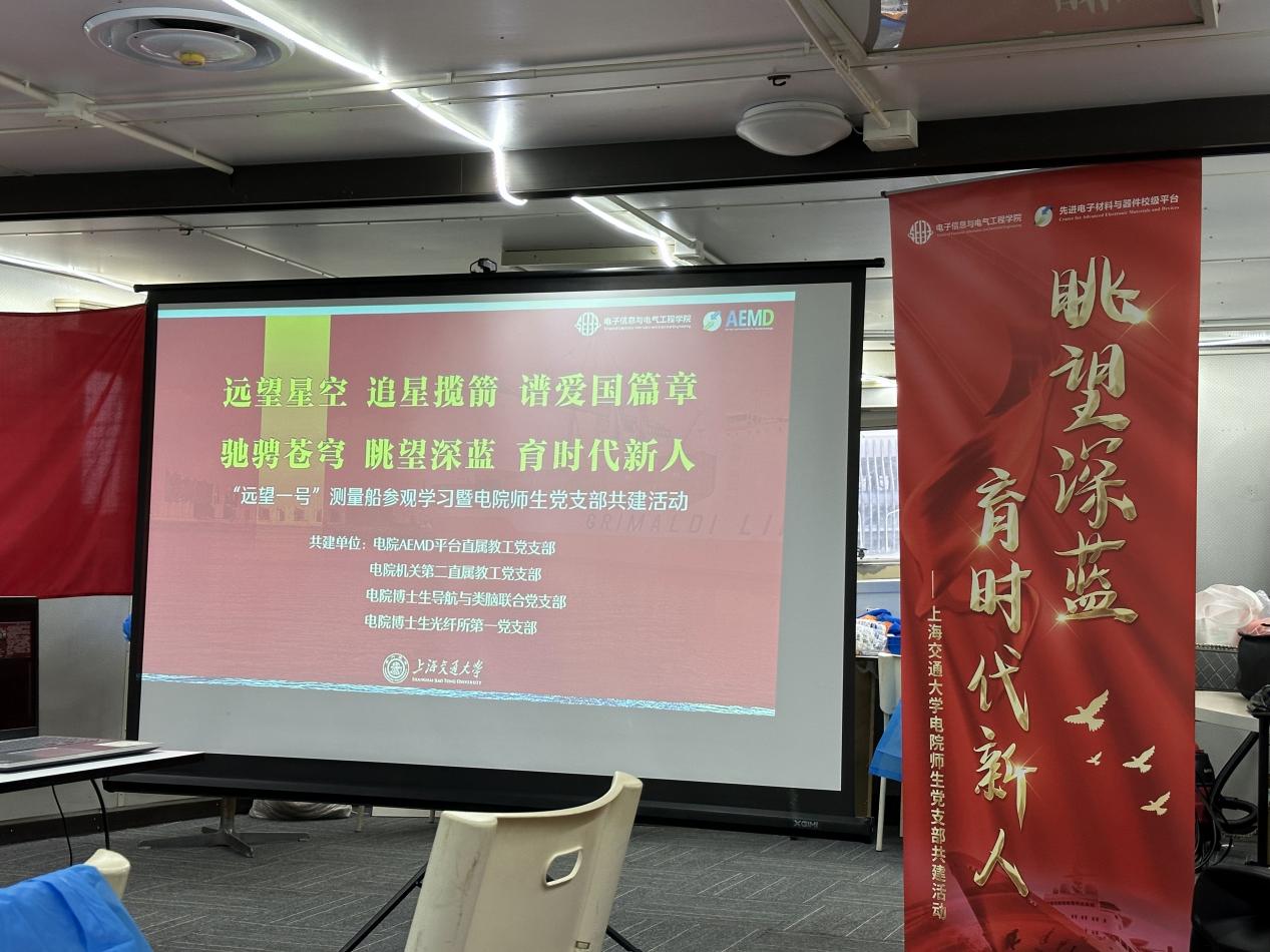 远望星空,寻梦深蓝,劈波斩浪,驰骋苍穹,“远望一号”测量船见证了国家走向深蓝的第一步,也在守望祖国的天空与海洋中铸就了海天不朽丰碑。为进一步学习宣传贯彻党的二十大精神,在“行走的党课”中体悟家国情怀,积蓄“拼出来、干出来、奋斗出来”的前行力量,11月17日,电子信息与电气工程学院AEMD平台直属教工党支部、电院机关第二直属教工党支部以及电院博士生导航与类脑联合党支部、光纤所第一党支部全体党员登上“远望一号”测量船实地参观学习,以“驰骋苍穹,眺望深蓝,谱爱国篇章,育时代新人”为主题举行了一场别开生面的联合主题党日活动,网络信息中心党总支副书记周子豪、智慧能源创新学院党政综合办姚又华、电院党委组织员赵健出席并观摩本次活动。
