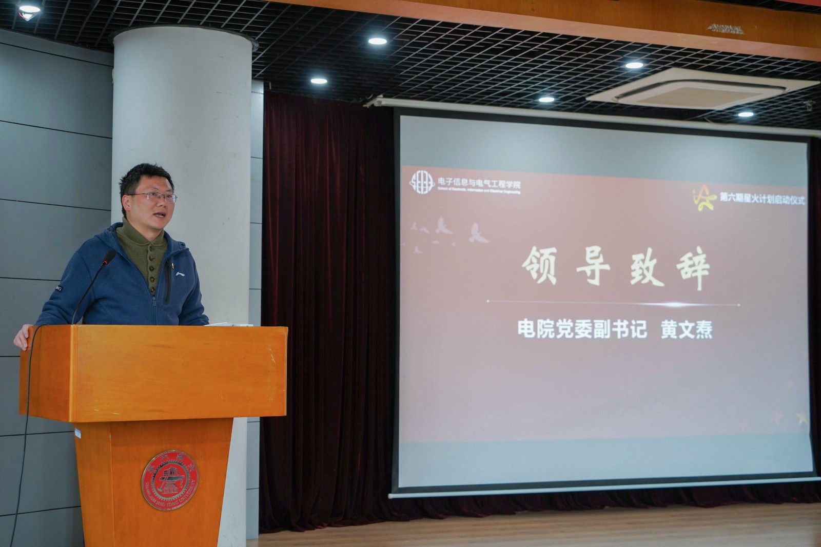 近日,电子信息与电气工程学院第六期“星火计划”启动仪式在电院群楼3-200多功能厅顺利举行。电院党委副书记黄文焘、巢睿祺出席,2022级本科生党建指导老师王智、学生党建工作办公室全体思政教师、党建研究会及第六期“星火计划”全体成员参加。活动由第五期“星火计划”成员许诣多主持。