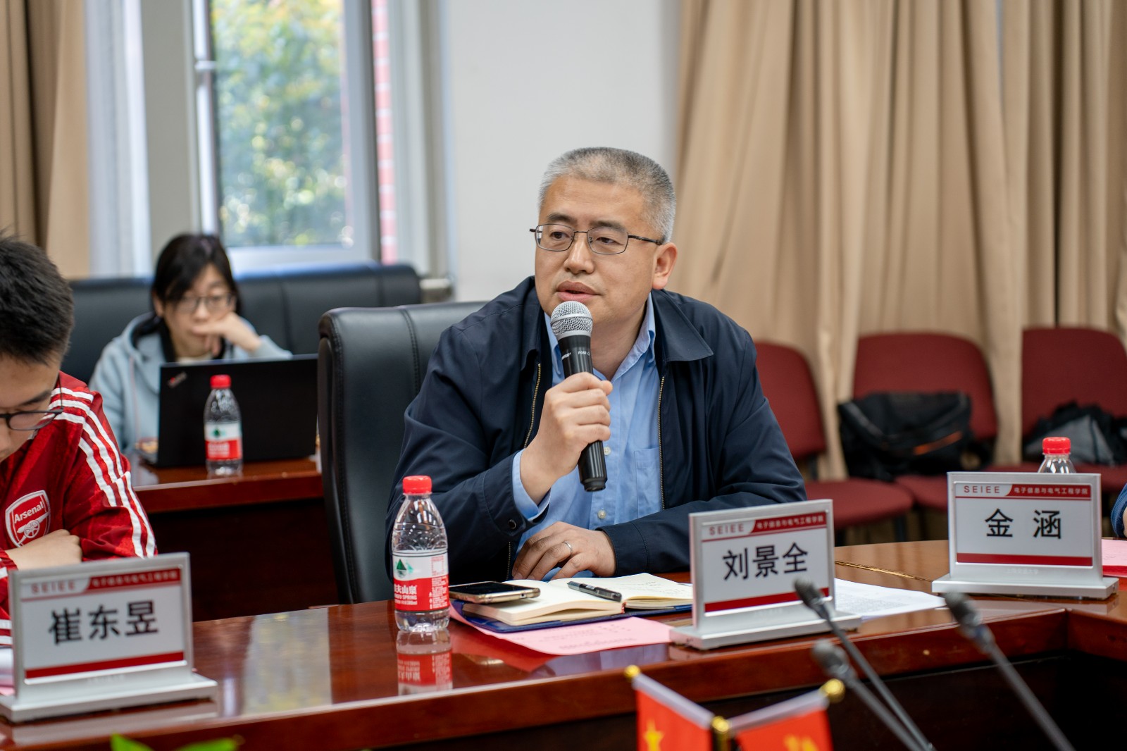 微纳电子学系副系主任纪志罡介绍了微纳电子学系学科情况,解释了顶刊、顶会认定相关细则。微纳电子学系系主任刘景全进行了补充,鼓励学生追求高质量科研成果。