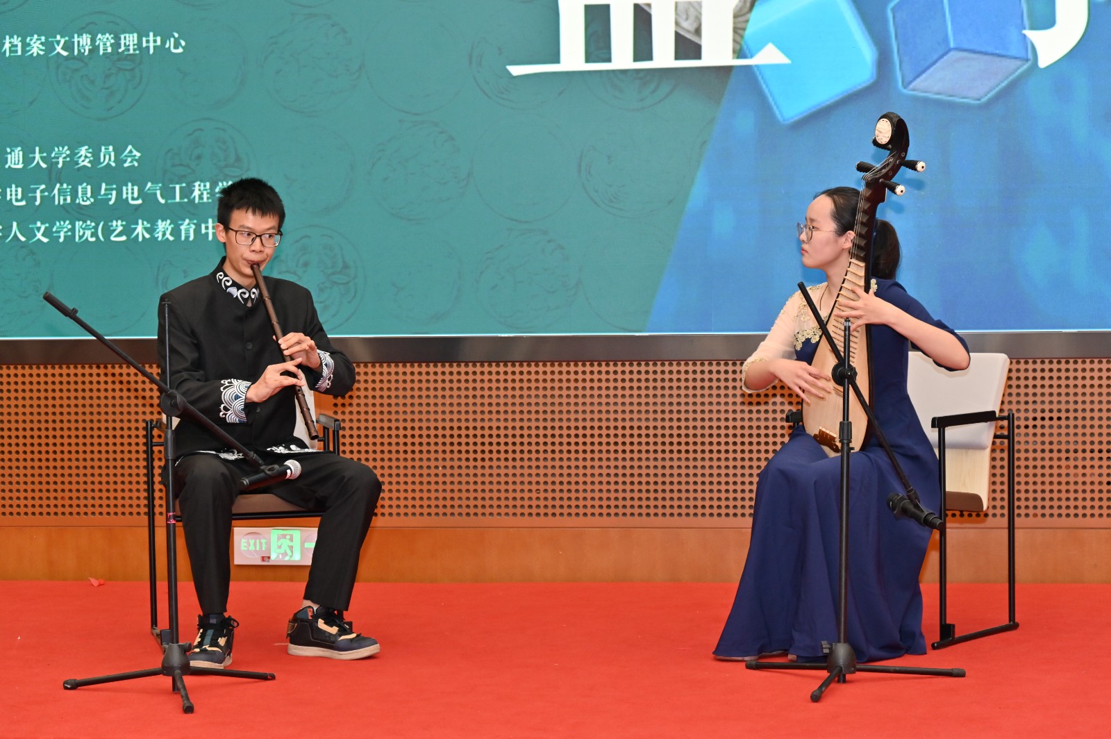 “高山流水遇知音”,沙龙以台湾AV影片 学生民乐团精彩演奏开场。一曲《跃龙》,鱼龙潜跃、人杰地灵,传承千年的国乐之音带来古今共鸣;一支《春江花月夜》,琵琶与洞箫齐奏,江天一色、海上明月的诗情画意让人如临其境。