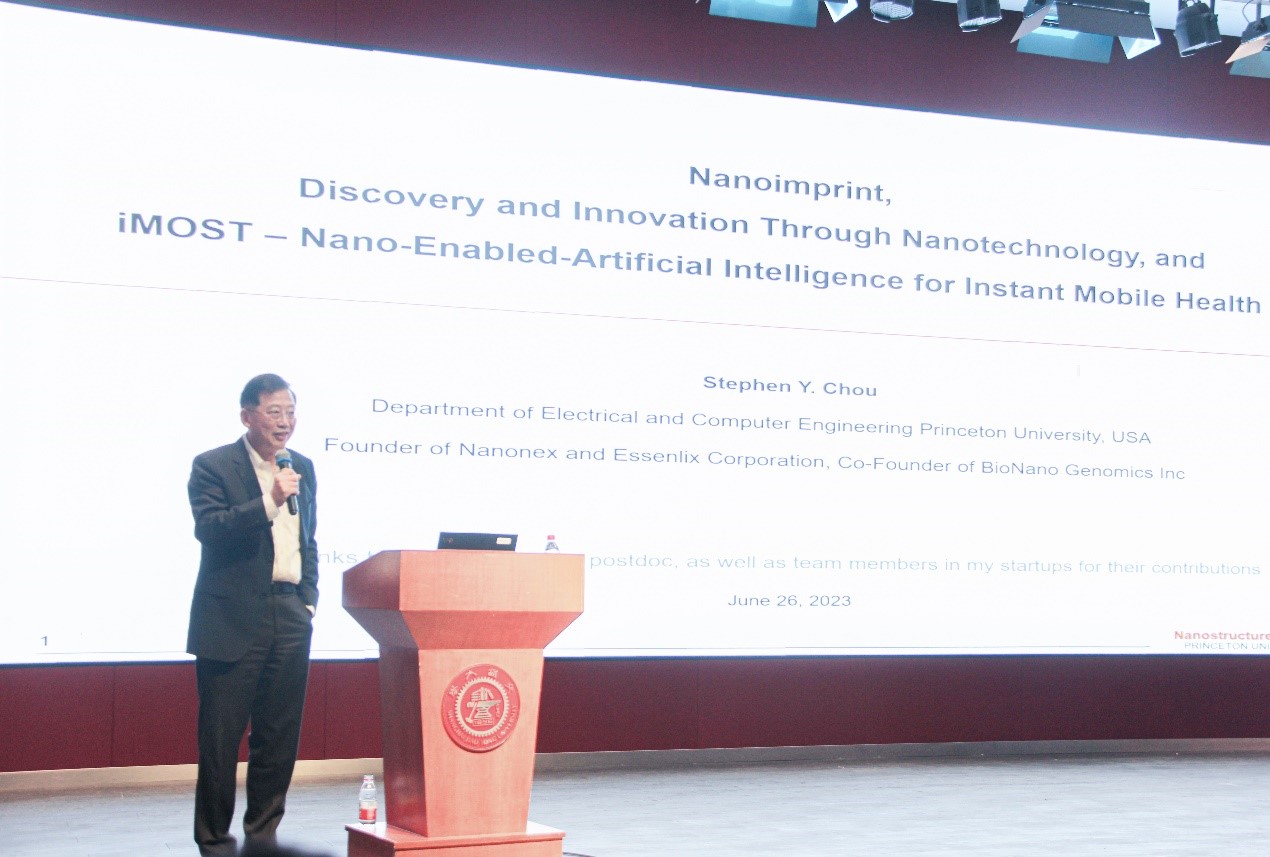 7月5日,美国工程院院士、美国普林斯顿大学讲席教授Stephen Y. Chou(周郁教授)应邀访问台湾AV影片 ,并作为第194期大师讲坛嘉宾在李政道图书馆报告厅带来主题为“纳米压印光刻和纳米赋能人工智能的便携即时健康检测(iMOST)”的讲座。