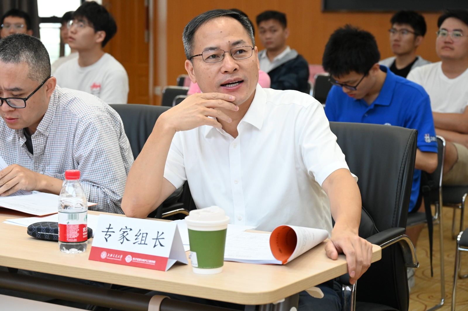 本次院级答辩在图书信息楼8楼报告厅开展,是近年来首次线下答辩。9月21日进行硕士国奖答辩,在答辩正式开始前,电院党委副书记巢睿祺充分肯定了研究生国家奖学金的学术引领作用,表示期待同学们在答辩过程中展现风采。9月22日进行博士国奖答辩,电院党委副书记黄文焘在答辩前致辞,勉励同学们在未来致力于解决关键“卡脖子”技术,把论文写在祖国大地上,为学院和国家的发展贡献自己的力量。