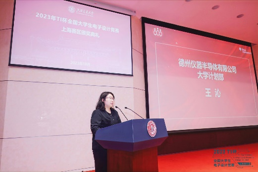 王沁在致辞中对本届电赛各校参赛队同学给予了高度评价,对获奖的赛队同学和老师致以衷心的祝贺。她表示:“十多年来,我们非常自豪能够一直持续支持大学生电子设计竞赛,非常乐于在市教委的领导下和赛区委员会以及在沪各高校老师们一起协同育人,努力让更多的学生参加到大学生电子设计竞赛活动。我们对竞赛活动的人才培养效果充满信心,也更加确信同学们的参赛实践与创新能力将对他们的未来职业生涯规划至关重要。”郑朝晖和沙宏志也分别上台致辞,勉励参赛同学们,时刻保持空杯心态,保持好奇,保持激情,不忘初心。