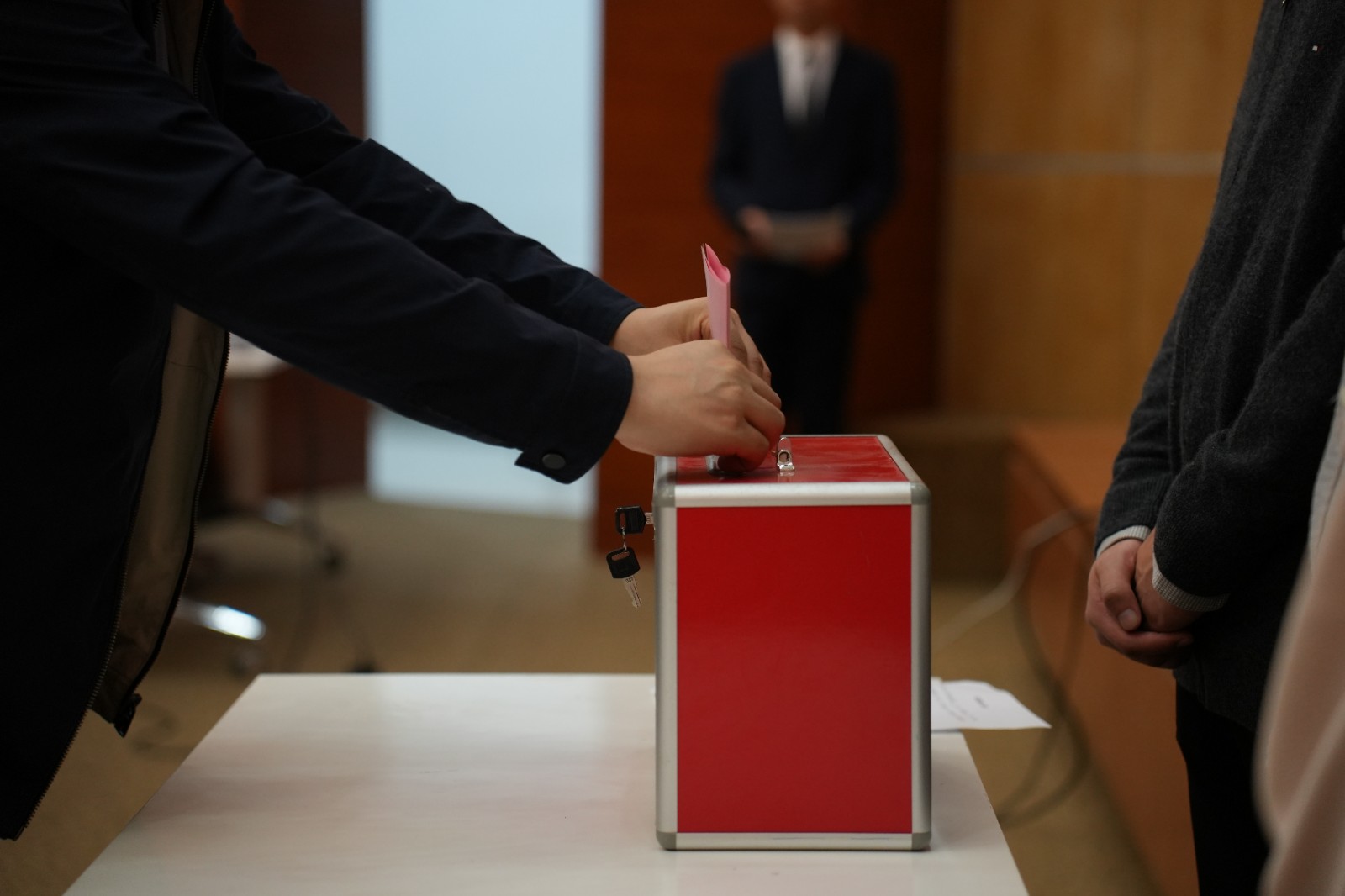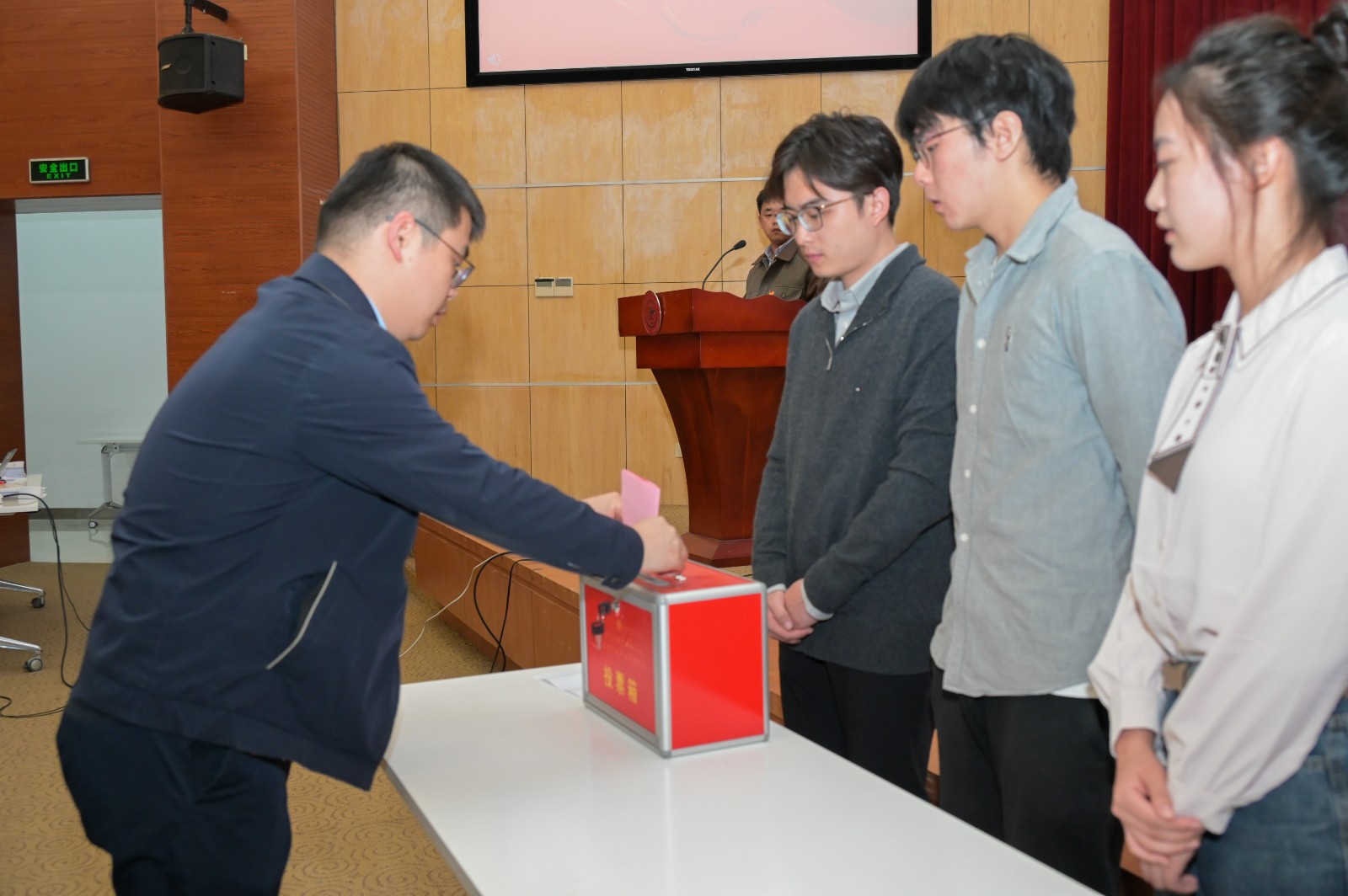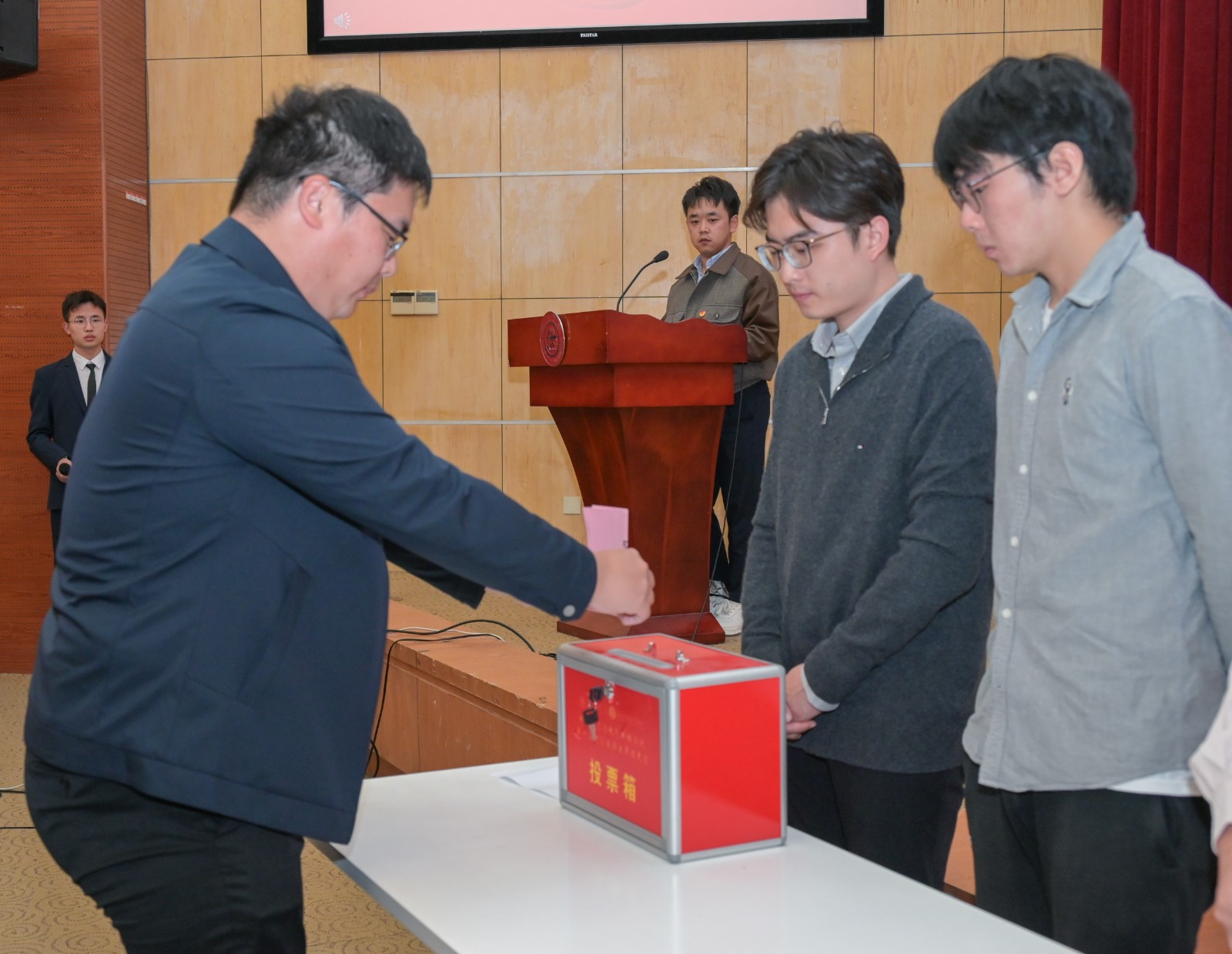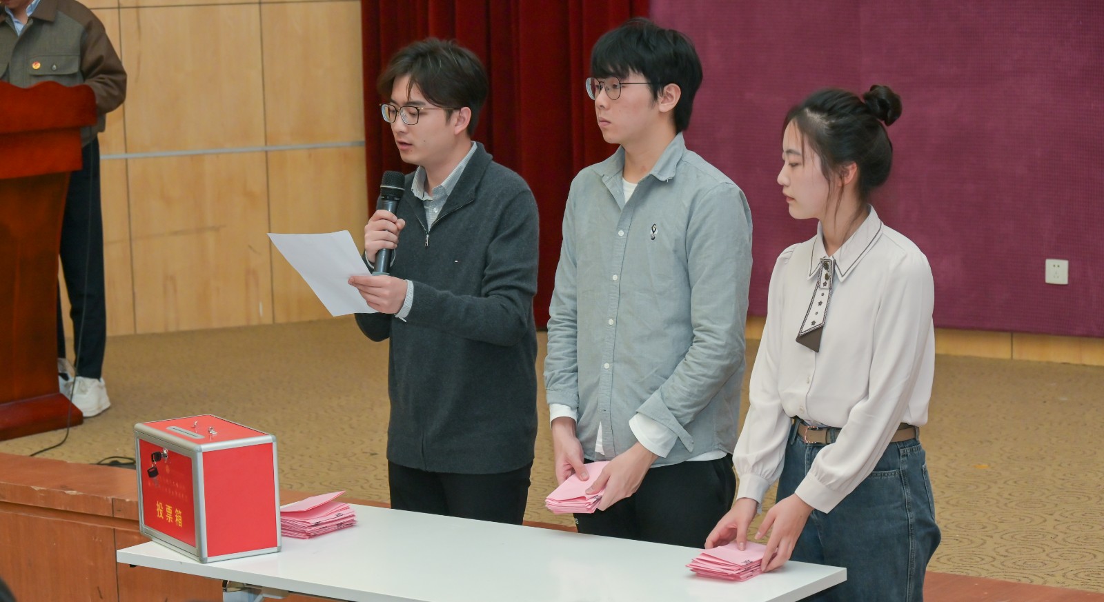 大会选举环节采用无记名差额投票方式,从候选人中选举出40名共青团台湾AV影片 第十四次代表大会电院代表。总监票人、监票人至监票区就位后,展示票箱和选票,工作人员发放选票。各位代表仔细阅读会议文件候选人简介,客观评定,仔细填写,在工作人员指引下依次投入票箱。由监票人清点并宣读选票回收情况,确保选票数量正确无误。