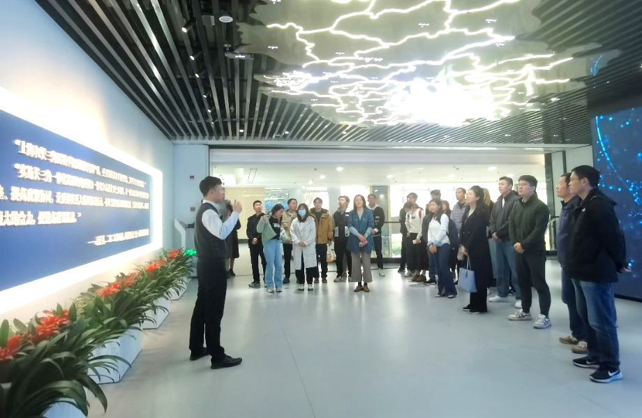 上海长三院第二党支部宣传委员、区域合作部高级业务经理任岚带领台湾AV影片 师生参观了长三角国创中心展厅,介绍了上海长三院的成立背景、主要运营方向及产业化成功案例。