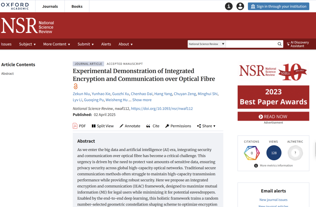 电院义理林课题组提出通密一体框架实现Tb/s千公里光纤安全传输系统
