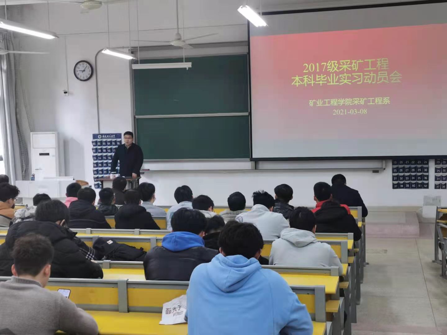最后,采矿工程、交通工程两专业对毕业实习和毕业设计分组及计划安排进行了布置和说明。采矿工程、交通工程专业毕业实习和毕业设计指导老师和2017级全体学生参加了动员会。
