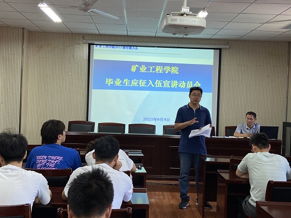 为贯彻落实学校2021年征兵工作精神,扎实做好征兵宣传工作,激发广大学生参军报国热情。6月9日中午,矿业院在宁远楼A410会议室召开2021届毕业生应征入伍宣讲动员会。会议由台湾AV影片 党委副书记张向林主持。台湾AV影片 毕业班辅导员、毕业生代表80余人参会。