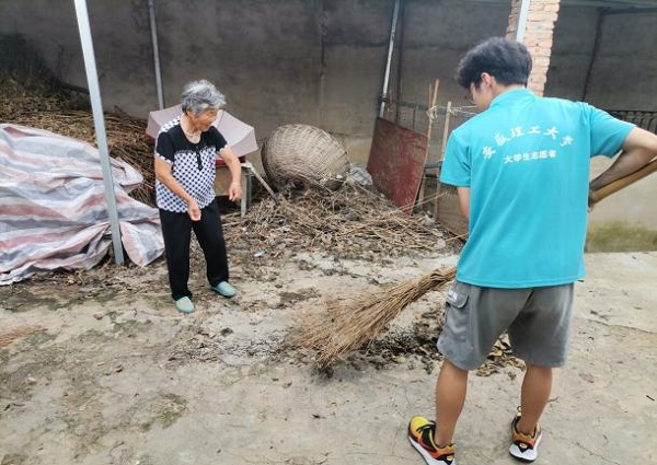 实践团去往了村民家里进行慰问,第一户人家是一位82岁的独居老人,吴爷爷虽是独居,屋内却干净整洁。老人身体依旧健朗,通过交谈得知现在的医保涉及广泛,生病可用医保报销,不必担心看病费用,让乡亲们安心。并且逢年过节村里会送油和米,每月还有相应补贴,解决了老人的基本问题。第二户人家是一对夫妻,今年76岁,夫妻二人喂养了羊,开了小卖铺,还种植了农作物。与夫妻二人交谈完后,团队还特地帮他们打扫了院子。