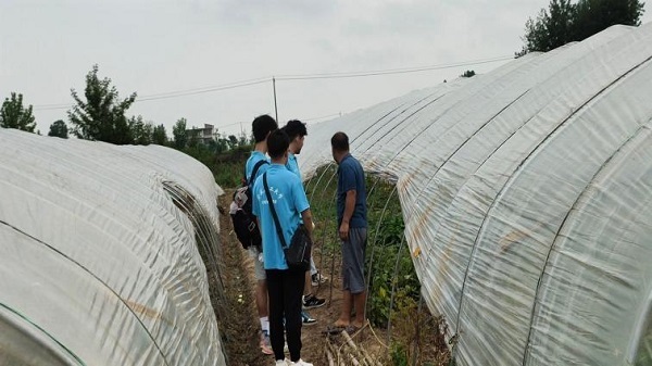 7月18日,团队来到柳新村进行走访调研。在规划好参观路线和宣讲注意事项后,同学们开始了学习之旅。脱贫成功后,村子里陆续盖起了新房子,也铺上了水泥地,生活也变得有滋有味。实践团首先来到了一户五保户的蔬菜大棚,四五个大棚里菜瓜、香瓜、羊角蜜、西瓜的种植区域规划的井井有条,正值果蔬的成熟季节,村民邀请同学们品尝香瓜、西瓜等作物。在聊天中得知,这块地是村里拨给他用于改善伙食,增添时蔬,像这种地村里还有许多,称为小菜园工程,在村民的悉心经营下几乎不用愁蔬菜的来源。离开小菜园,一行人继续前进,沿路同学发现家家户户门口都有三个类似下水道的井口,干部讲解到这是响应国家政策修建的三垒式环保化粪池,非常适合农家厕所的改造,有卫生环保、经济适用、简便易行的特点。随后小队到达村里的乡村舞台,这里时常有戏班子来搭台唱戏,旁边有草棚凉亭和公共厕所,便于村民农活归途休息和方便,精致的木艺修剪、精细的垃圾分类、朗朗上口的村规民约无一不让同学们称赞。