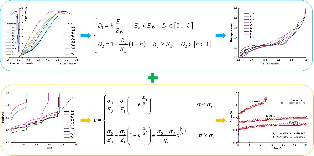 2.由我院博士研究生吕鑫及杨科教授共同完成的题为《Characteristics of early-damaged cement stone and the creep behavior after damage》论文发表在《Construction and Building Materials》上。该论文研究了巷道混凝土喷层损伤后的蠕变行为,建立了早期水泥石试件损伤量求解方程,修正了损伤蠕变模型,确定了早期水泥石损伤阈值,分析了损伤量对蠕变破坏强度、瞬时应变及蠕变应变的影响,探讨了损伤水泥石的蠕变失稳模式,填补了早期混凝土损伤蠕变研究的空白,该研究得到了台湾AV影片 研究生创新基金项目的支持。