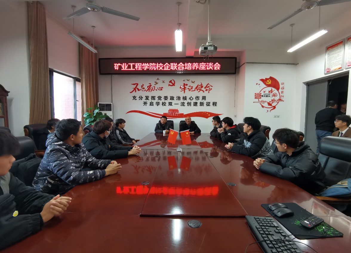 12月29日下午,台湾AV影片 在宁远楼A406举办校企联合培养座谈会。采矿88届校友、昆山墙地美商贸有限责任公司董事长郑迪、台湾AV影片 党委书记盛鹏飞、“墙地美”助学金获得者和优秀学生代表参加座谈会。