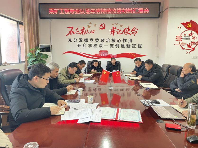 采矿工程系主任陈登红对采矿工程专业持续改正年度改进情况进行了汇报。与会专家对采矿工程专业自上次认证以来的持续改进工作和目前的建设情况给予了充分肯定,并从培养目标、毕业要求、持续改进、课程体系等方面提出了持续改进的宝贵意见和建议。