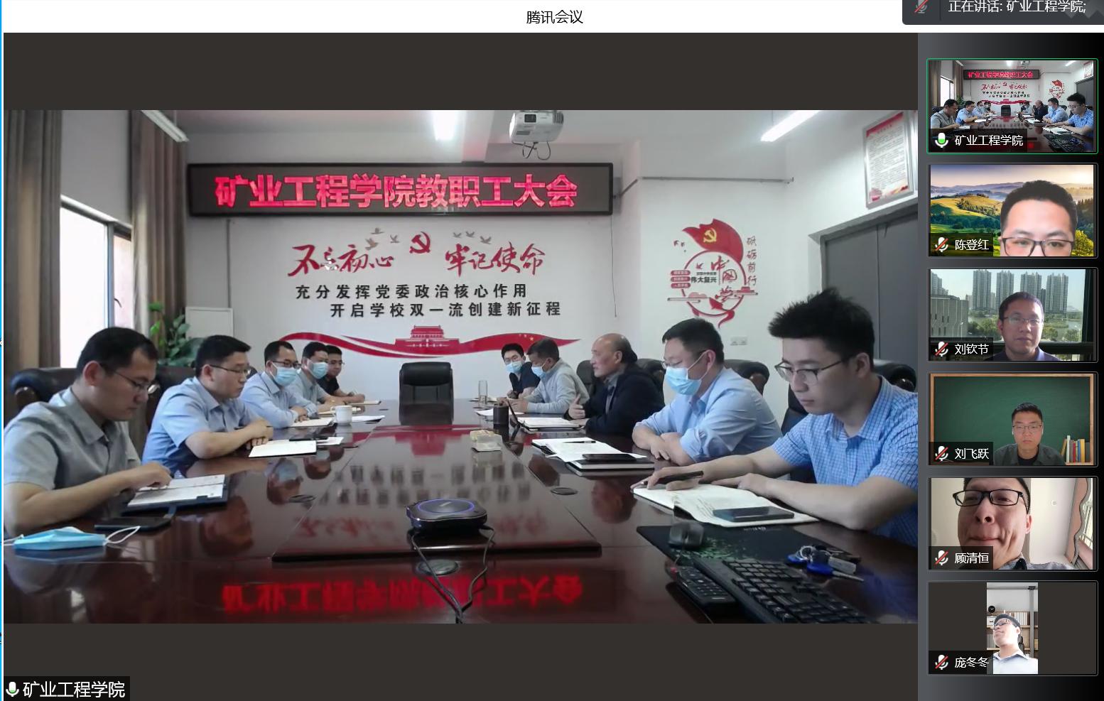 5月6日上午,矿业与工程台湾AV影片 通过线上线下相结合的方式召开全体教职工大会,会议由台湾AV影片 党委书记盛鹏飞主持,台湾AV影片 领导班子成员及全体教职工参加会议。