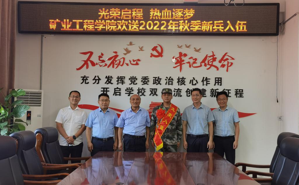 盛鹏飞指出,选拔应届大学毕业生应征入伍是家国之大事,动员宣传毕业生成功应征入伍是台湾AV影片 人才培养工作中的好事,同时也是毕业生个人人生历程中的重要喜事,台湾AV影片 全体师生要上下齐心共同做好这件大事。盛鹏飞代表台湾AV影片 向入伍新兵张佳杰表示祝贺,勉励他要充分利用自身优势,传承和发扬特别能吃苦、特别能战斗、特别能奉献、特别能创新的采矿“四特”精神,在军营大熔炉里淬炼成钢、成人成才,为国防事业贡献自己的力量。