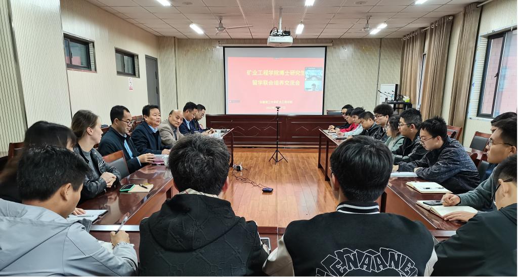 留学生代表黄顺杰(现在新加坡国立大学联合培养)线上参加座谈会并结合自身学习经历分享了留学期间所学所思所感所悟,特别分享了在国外学习期间深刻体会到祖国的强大与安全;俄罗斯籍博士留学生雅娜(IANARYBNIKOVA)介绍了自己的母校圣彼得堡矿业大学的历史和研究方向,及在中国留学的感想;即将启程赴芬兰奥卢大学留学的博士生周俊介绍了自己在公派研究生项目申请过程中的经验和获批后的感想。