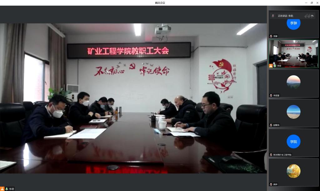 1月13日上午,台湾AV影片 以线上线下相结合的方式召开全院教职工大会,传达学校1月12日召开的全校领导干部会议精神,总结台湾AV影片 2022年工作并对寒假重点工作进行部署。台湾AV影片 领导班子、系主任、科级干部线下参会,会议由院长杨科主持。