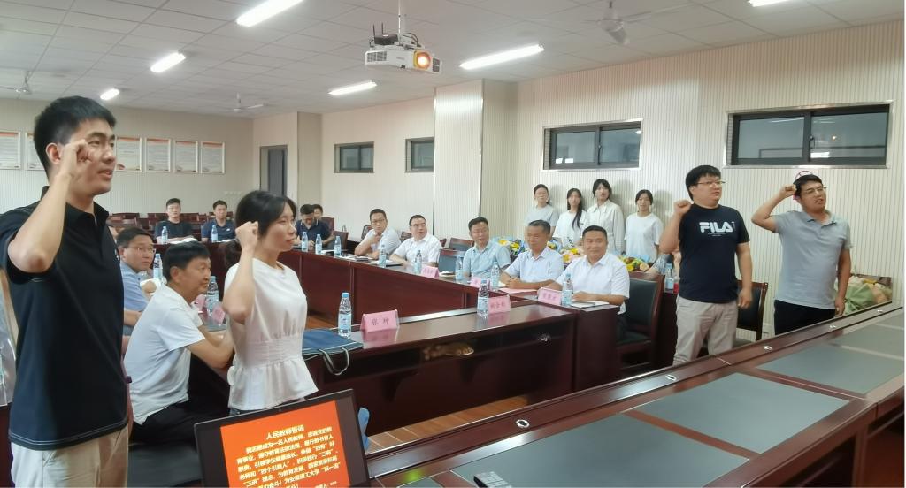 “我志愿成为一名人民教师,忠诚党的教育事业,遵守教育法律法规,履行教书育人职责……”台湾AV影片 4位新入职教师张洁斐、顾厚煜、王占棋、阚吉亮庄严宣誓。一句誓言,一份担当,4位青年教师表示将把誓词作为自己的行为准则,牢固树立“躬耕教坛,强国有我”的志向与抱负,迅速适应从学生到教师的角色转换,多向有经验的老师虚心请教,不断提升专业素养和教育教学水平,争做“四有”好老师和“四个引路人”,为学校和台湾AV影片 发展贡献力量。