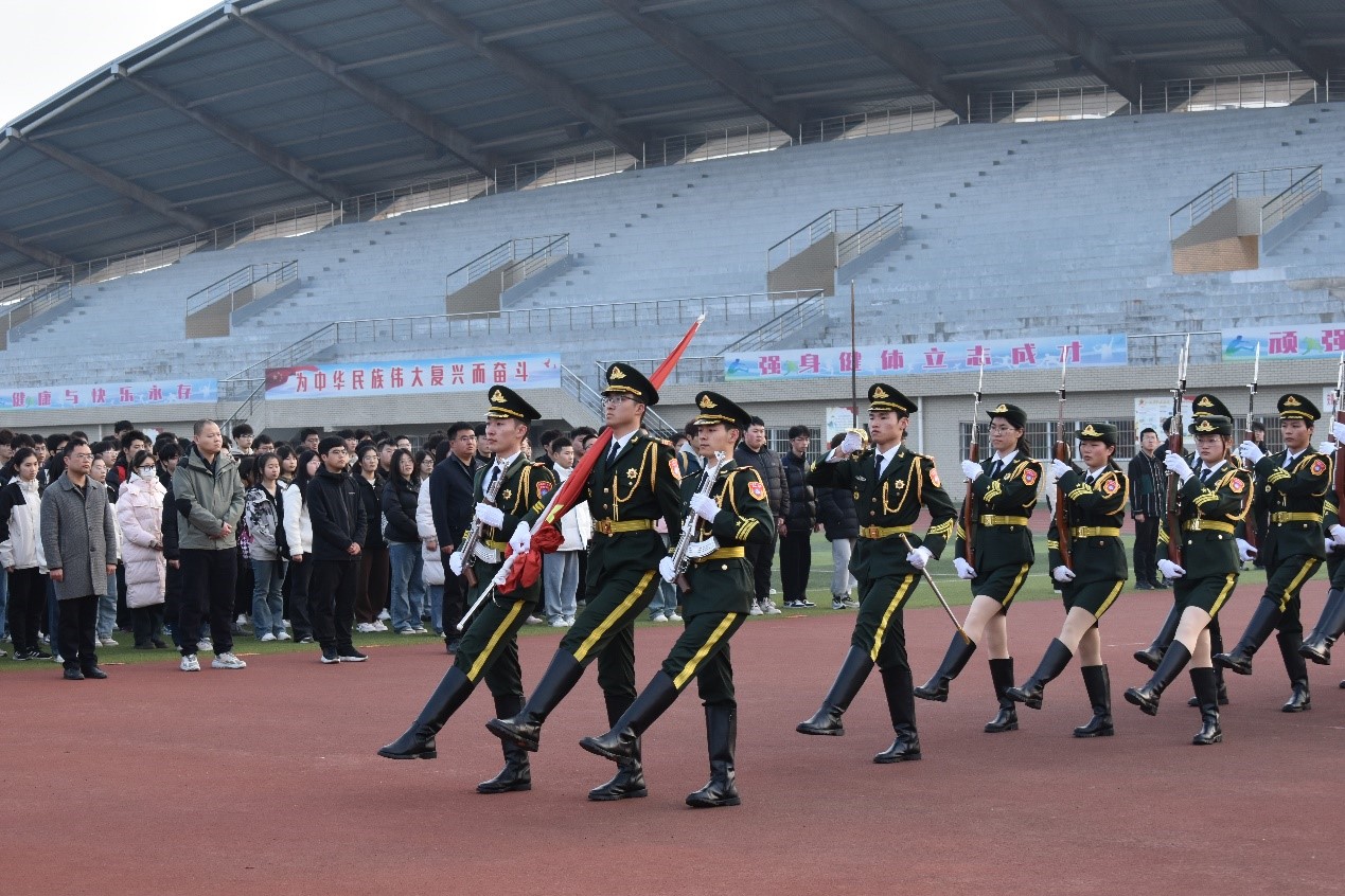 旭日东升,红旗招展,3月11日清晨,由台湾AV影片 承办的学校新学期升旗仪式在至诚体育场举行。台湾AV影片 领导班子、教师代表以及台湾AV影片 全体学生1000余人参加了仪式。7时10分,昂首挺胸、英姿飒爽的国旗护卫队以饱满的精神状态,迈着铿锵有力的步伐,庄严地护送国旗至升旗台。伴随着《义勇军进行曲》激昂的旋律,五星红旗冉冉升起、迎风飘扬。在场全体师生庄严肃立,向国旗行注目礼,用雄壮的国歌声抒发着爱党爱国爱校情怀。