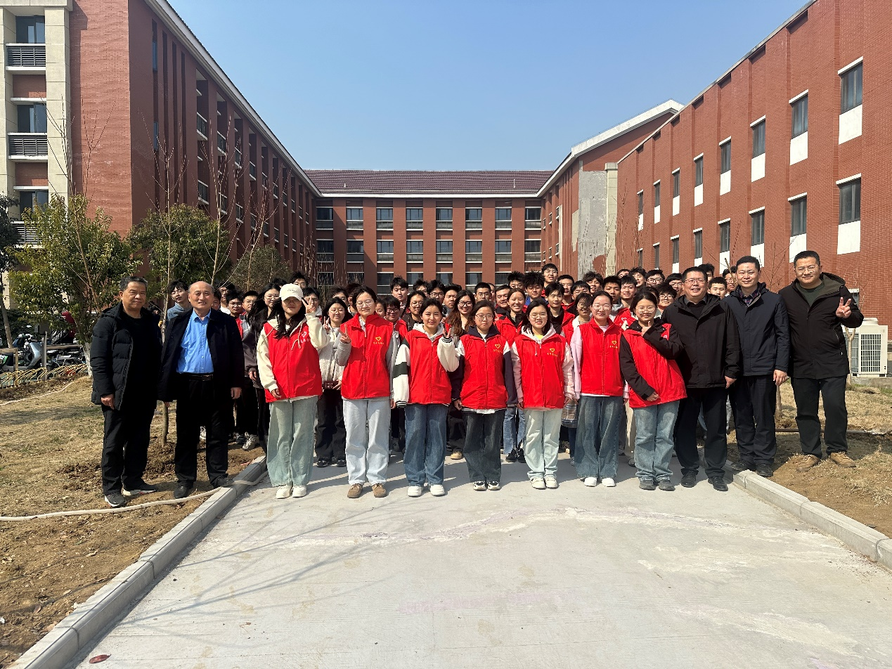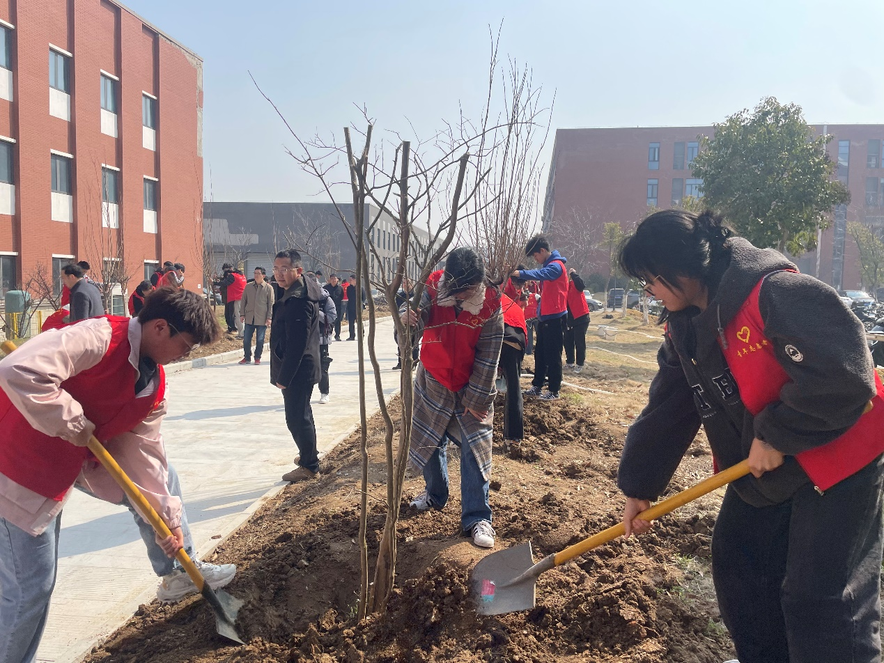 在宁远楼北植树现场,师生们分工合作,大家各司其职,配合默契,相互协助,扶苗、培土、踩实,每个人都干劲十足,现场一片繁忙景象。在大家的共同努力下,一棵棵小树苗在土地上安家落户,为我们的校园增添了一抹新绿。