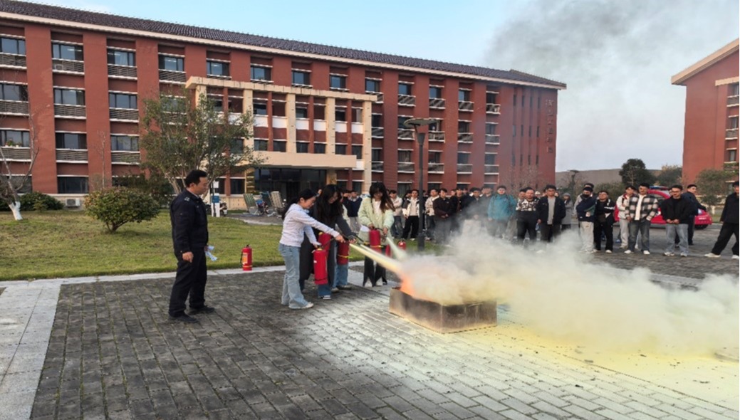 会后进行了模拟发生火灾后的应急疏散和 “真灭火、真动作”实操实训。保卫处工作人员现场指导师生 “提、拔、握、压”四步法正确操作灭火器,并组织师生轮流参与灭火实操。演练过程中,师生近距离体验火灾扑救流程,掌握了初期火灾的处置要点,有效提升了应急反应与实操能力。