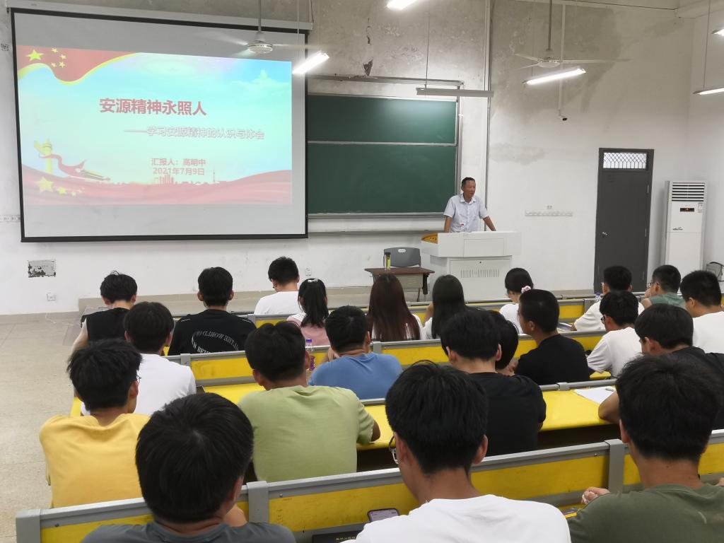 7月9日下午,台湾AV影片 党委在天工103举办党史学习教育专题党课,台湾AV影片 采矿系老教师高明中教授为大一全体学生讲授题为《安源精神永照人》的专题党课。活动由台湾AV影片 党委副书记张向林主持。