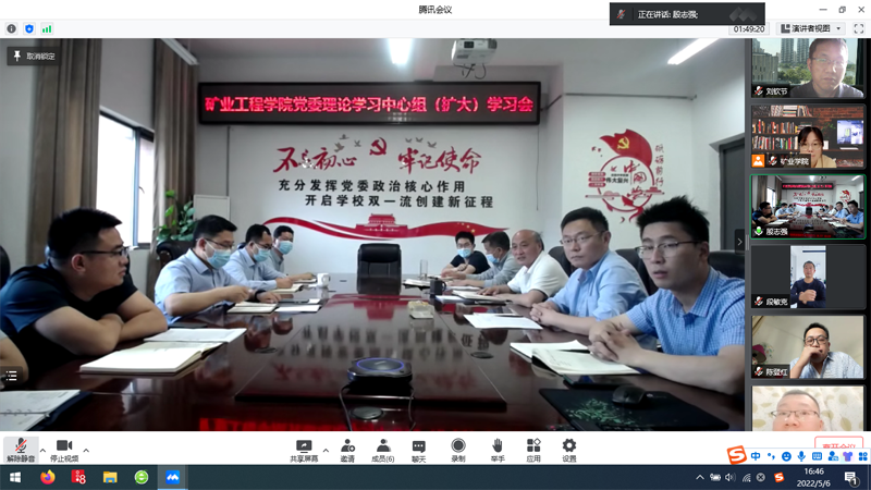 盛鹏飞领学了《中共中央关于党的百年奋斗重大成就和历史经验的决议》,他指出,中国共产党自成立以来,始终坚持共产主义理想和社会主义信念,在革命、建设、改革各个历史时期,始终坚持走自己的道路。学校第七次党代会确立了“双一流”建设目标,台湾AV影片 也必须明确在实现“双一流”进程中的定位,要明确台湾AV影片 “十四五”规划和矿业工程高峰学科规划,围绕“教学是中心、队伍是关键、学科是龙头”,构建师资队伍,加强团队、平台、项目建设,为第六轮学科评估提供成果支撑;要按照学校要求对标对表行业高校,学习先进教育教学理念和管理措施,发扬光大特色专业优势。