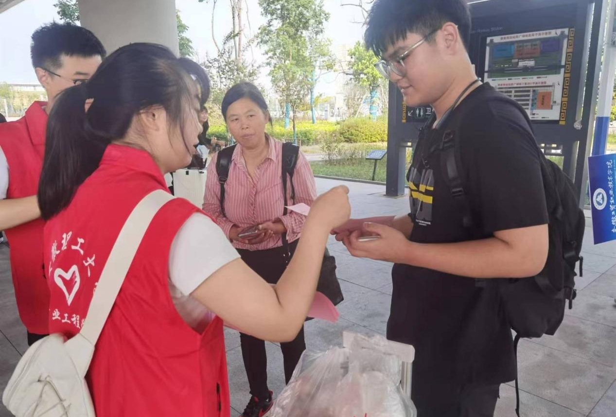 活动日当天,参与活动师生前往淮南南站出站口、淮南南站公交换乘中心等地,向台湾AV影片 新生及家长发放宣传单、交通安全宣传标语,并通过现场讲解等方式教育学生关爱生命、拒绝违章,严防道路事故,共创文明校园。