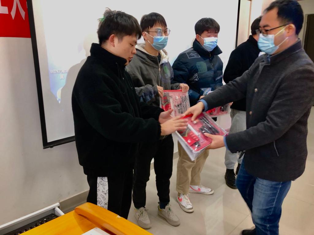随后,杨科亲自给考研同学们分发台湾AV影片 精心准备的考研加油礼包,礼包有研究生考试文具套装、口罩、牛奶、水果、零食等。