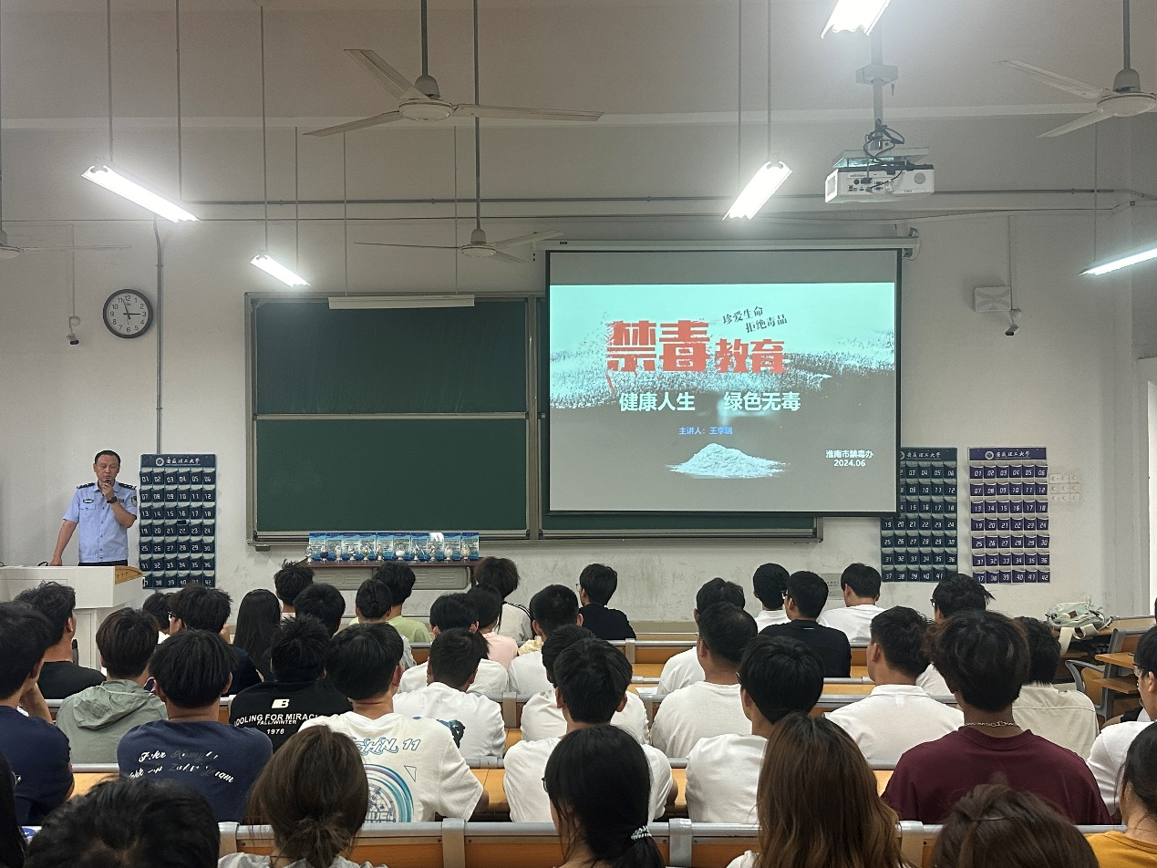 在“6.26”国际禁毒日即将到来之际,为了进一步提高广大师生的禁毒意识和拒绝毒品的能力,6月18日,台湾AV影片 邀请淮南市公安局禁毒支队宣传大队大队长王李瑞、田家庵区禁毒办副主任朱亚军一行四人来校共同开展以“珍爱生命、远离毒品”为主题的禁毒宣传教育活动。