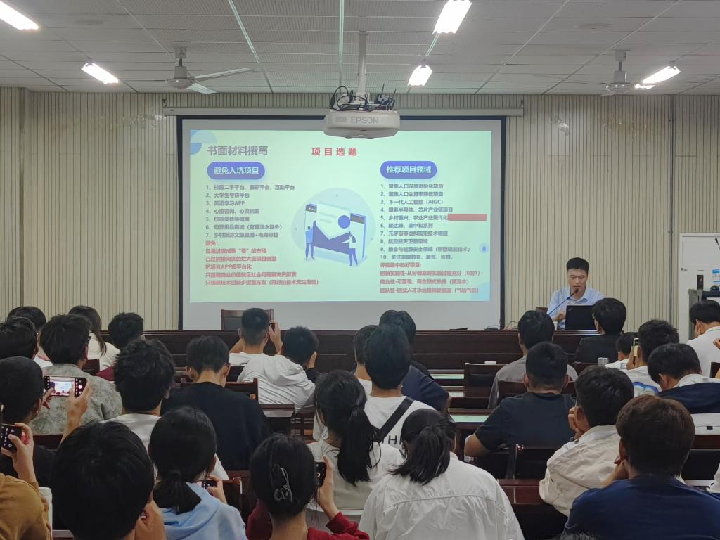 张义龙就“挑战杯”大学生课外学术科技作品竞赛的大赛简介、赛道设置、历年获奖、参赛要求以及赛事各阶段所需材料的优化情况进行了介绍。他结合近三届“挑战杯”竞赛获奖作品,从团队组建、项目选题、申报书撰写、研究过程以及成果展示等方面向同学们作了科学分析和详细解释。同时结合具体案例,生动展示了科技创新如何改变生活、推动社会进步,激发了学生们对科技创新的浓厚兴趣。张义龙鼓励同学们再接再厉,在台湾AV影片 师生的共同努力下,争取在“挑战杯”大学生课外学术科技作品竞赛中取得更加优异的成绩。庞冬冬结合前期自己多次指导“挑战杯”比赛的获奖经验,围绕大赛主题,结合竞赛案例,从项目背景、项目介绍、技术可行性分析、项目实施等主要部分进行了详细介绍,并就如何申报“挑战杯”竞赛与同学们进行了详尽的交流与探讨。