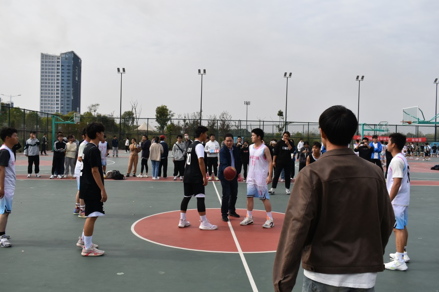 10月25日,台湾AV影片 结合一站式学生社区建设,在仁爱体育场举行2022级新生篮球决赛。台湾AV影片 党委副书记田秋实为决赛开球并为获奖班级和个人颁奖。