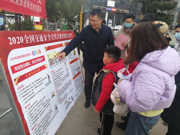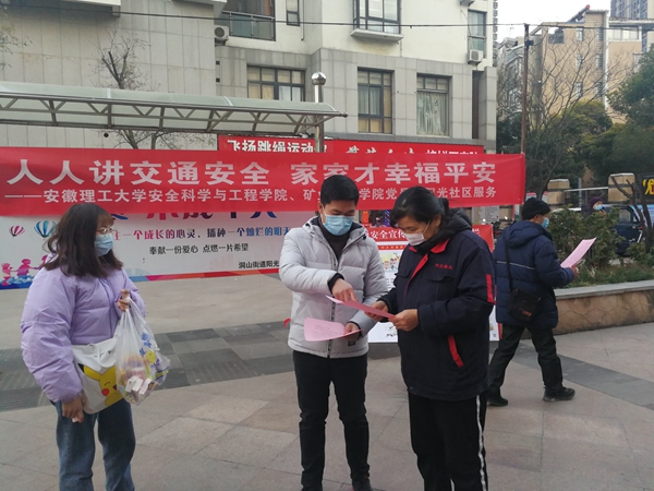 为了普及交通安全知识,倡导安全文明出行,12月17日下午,安全科学与工程台湾AV影片 和台湾AV影片 联合组织师生党员,走进阳光社区优山美地小区,开展交通安全宣传的党员进社区服务活动。