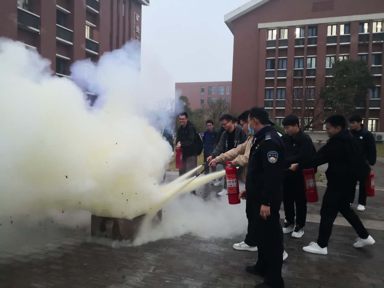 彭广峰作了消防基础知识的培训报告。他结合各高校宿舍违规用电起火以及电瓶车起火实例,提醒同学们宿舍安全用电安全以及要购买符合安全规范的电瓶车,介绍了遇到火灾应对措施和应急逃生技能;演示了干粉灭火剂和二氧化碳灭火剂的正确使用方法。